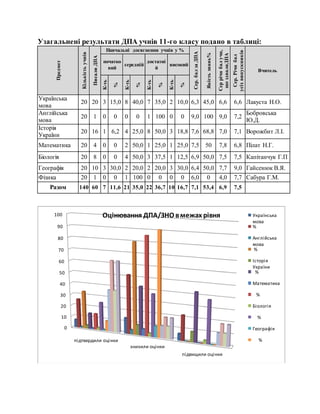 Узагальнені результати ДПАучнів 11-го класу подано в таблиці: