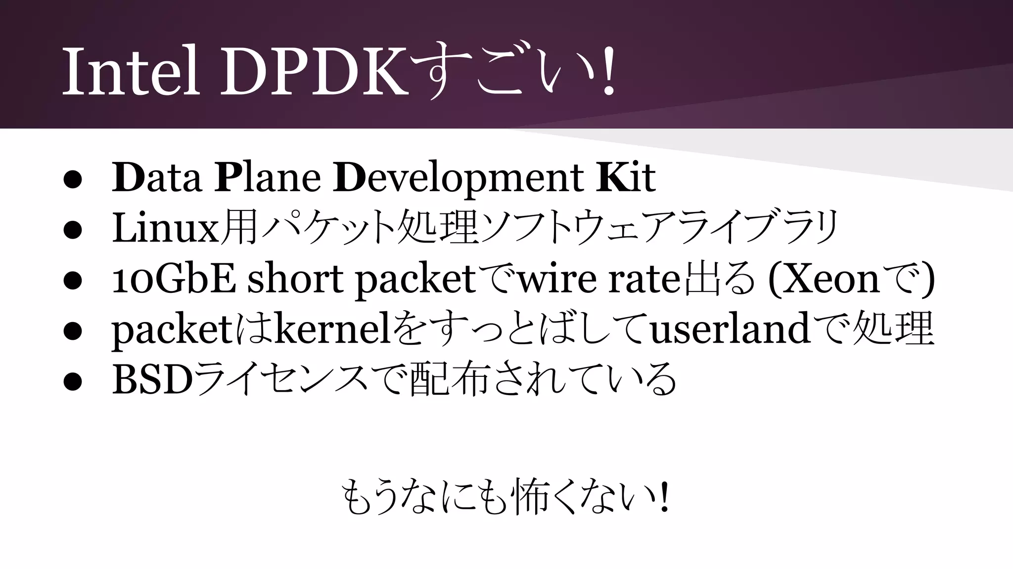 wire rateをほぼ出せた。 ● Pktgenは若干怪しい。(たまにバグでこけるし) ● Celeron機は、散財に終わる可能性が…… それはさておき、 DPDKいじり楽しいですー!(コード書けよ)