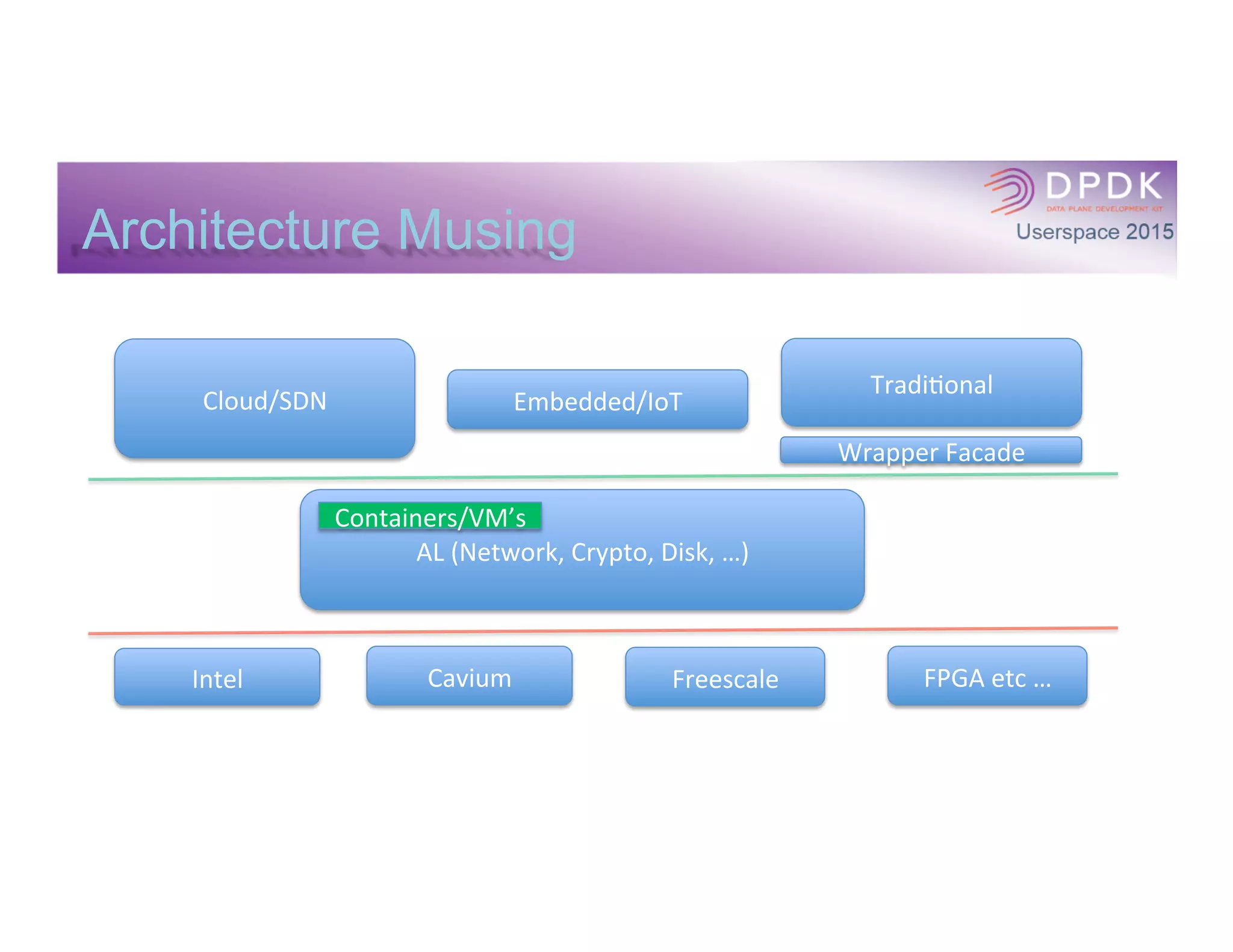 The document discusses the goals and requirements of an abstraction layer (AL) for networking applications. The AL aims to decouple innovation between network application vendors and hardware vendors to allow both sides to innovate independently. It seeks to define a common interface that supports different hardware architectures, provides offloads, and enables applications to efficiently move packets while being hypervisor agnostic and portable across systems. The requirements include functional characteristics like packet processing as well as non-functional aspects like security, performance, extensibility, and manageability.