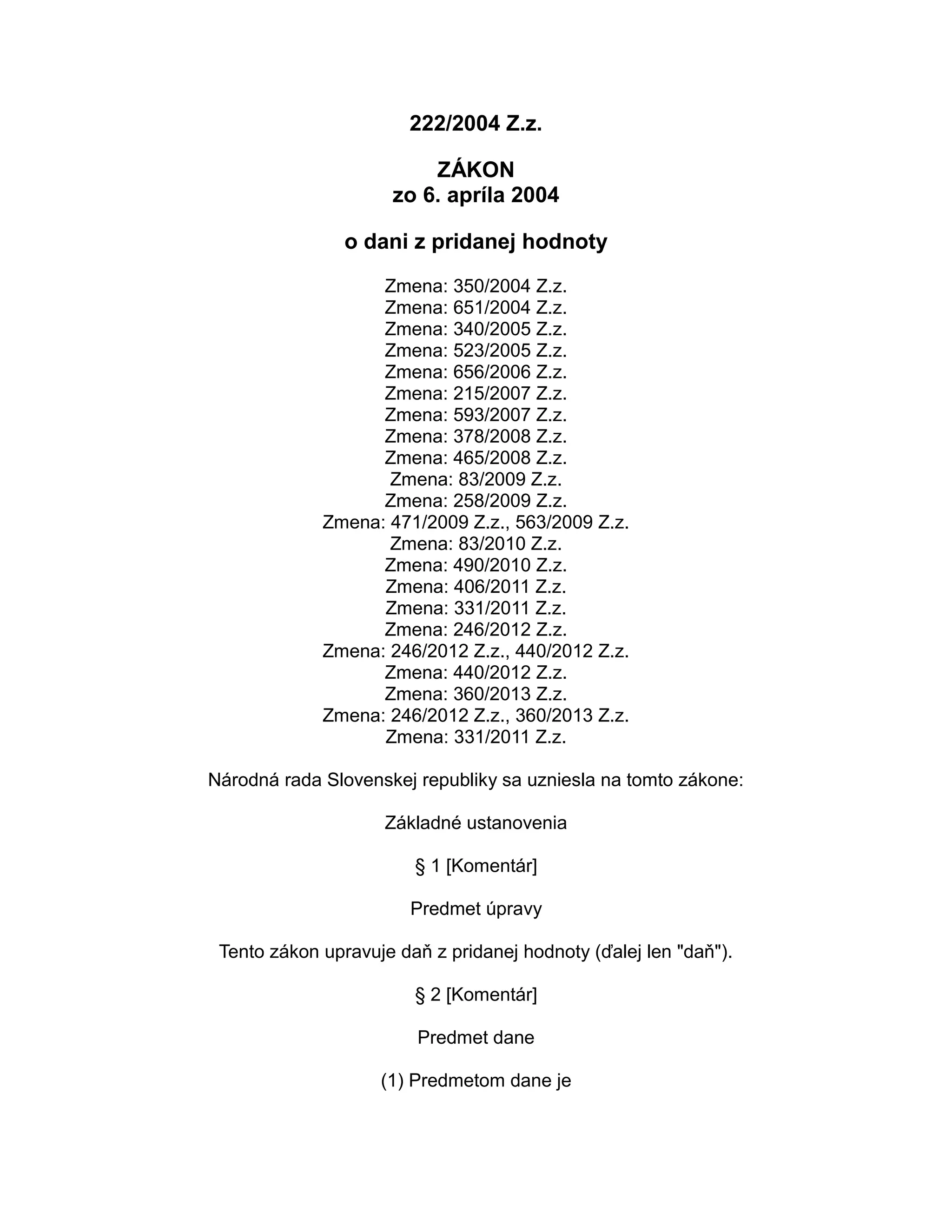 Tento zákon upravuje daň z pridanej hodnoty (ďalej len "daň").