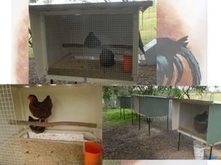 The document outlines essential care guidelines for backyard and exhibition poultry, focusing on housing, food, water, and health management. It emphasizes the need for accessible nutrition and proper living conditions, ensuring birds have enough space, shelter from the weather, and protection from predators. Additionally, it includes specific requirements for water consumption, feeding approaches, and biosecurity measures.