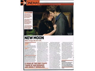 This document provides annotations and comments on the layout and elements of a film review. It identifies key components of the review such as the title of the film in large text at the top, a main image showing characters, sections for the story, facts about the film, and a concluding verdict. Comments provide suggestions for including these elements in another film review and explain how aspects like the main image, review text, and facts engage the audience.