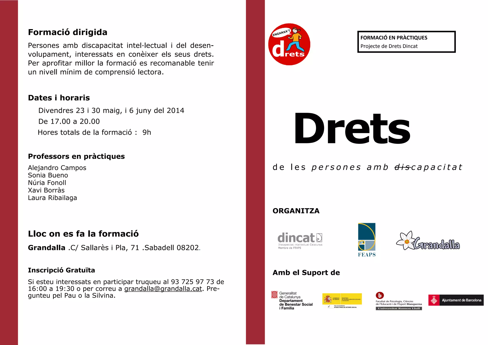 16:00 a 19:30 o per correu a grandalla@grandalla.cat. Pre-