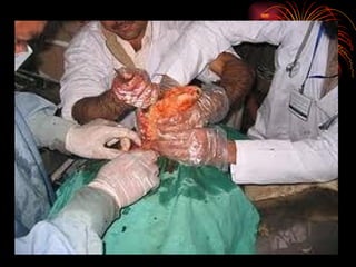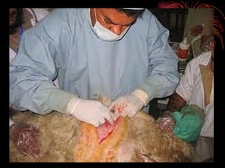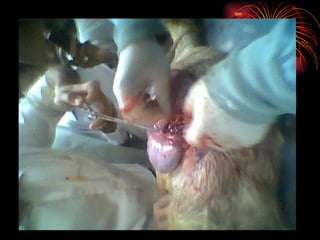 This veterinary case summary involves a goat experiencing dystocia or difficult labor. The goat was 3 years old and experiencing an obstructed birth. A caesarean section was performed under local anesthesia to deliver the fetus and resolve the dystocia. The uterus was treated with medication after delivery and the incision was sutured closed.