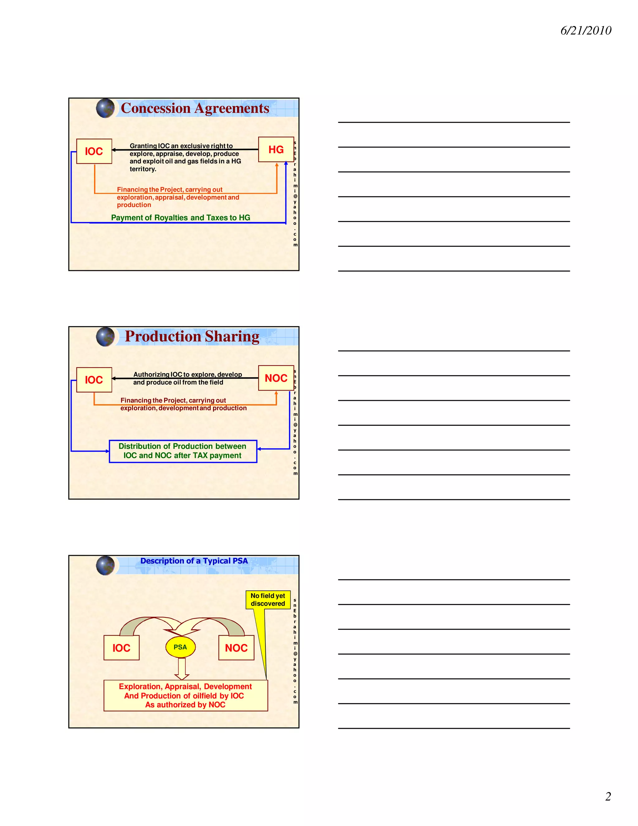 The document discusses contemporary concerns of National Oil Companies (NOCs) and International Oil Companies (IOCs) in the oil and gas industry. For NOCs, key concerns include political control over oil resources, economic benefits and revenue sharing, technology transfer, local employment, and capacity building. For IOCs, concerns relate to geopolitical and political risks, contractual and regulatory issues in host countries, environmental and social impacts, and developing collaborative partnerships with NOCs. Both NOCs and IOCs seek to maximize value from strategic partnerships through concerns such as skills development, joint ventures, and expanding activities across markets.