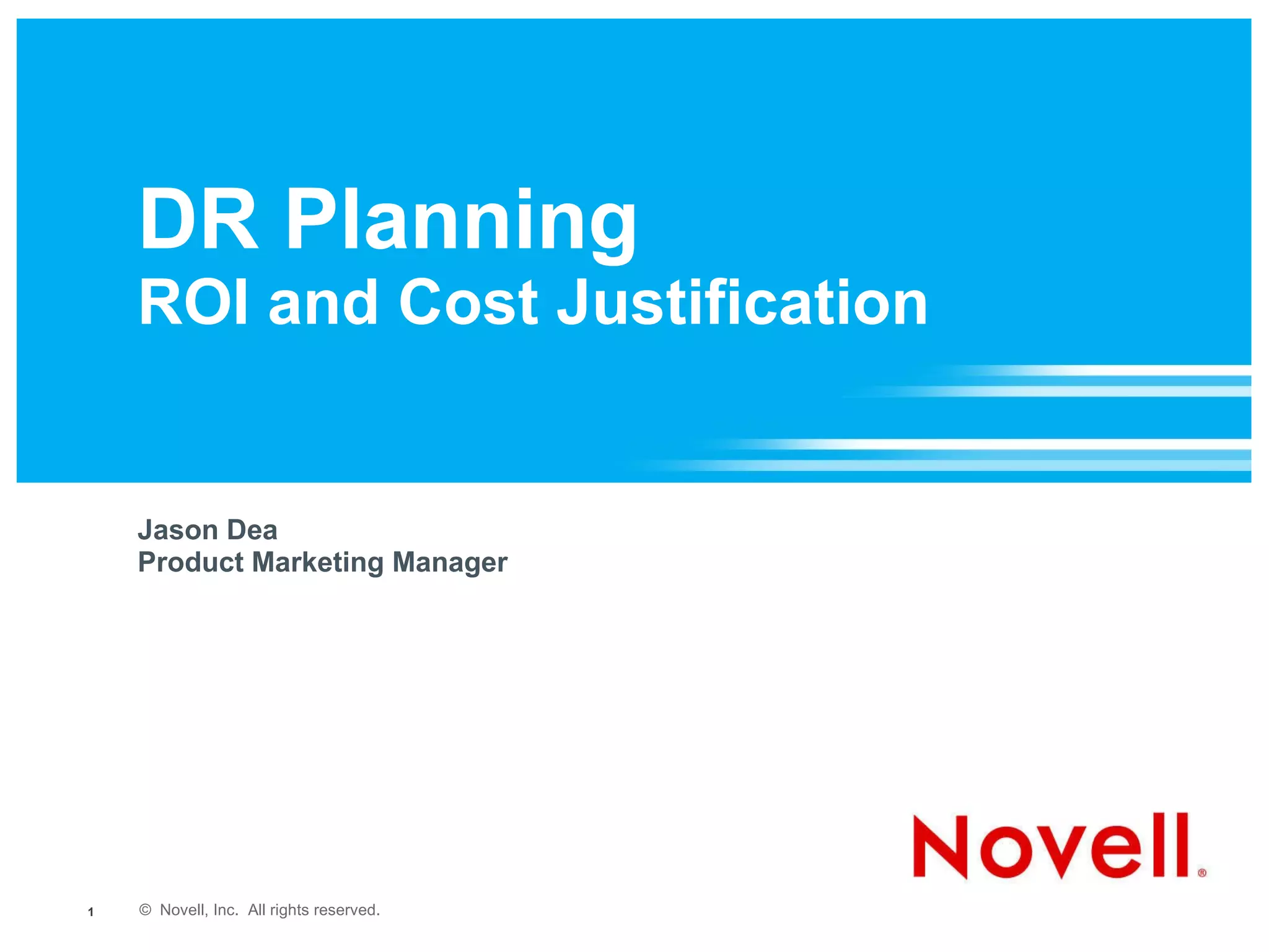 The document discusses PlateSpin Forge, a disaster recovery appliance that uses virtualization to consolidate recovery of workloads. It reduces infrastructure costs compared to traditional DR solutions by replicating workloads to a virtual machine. This allows workloads to be tested and failed over with a single click. Customers saw potential savings of $177k by using PlateSpin Forge instead of other DR methods.