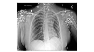 The document outlines a chest x-ray interpretation series led by Dr. Michael Gibbs, focusing on various cases submitted for analysis. It highlights specific diagnoses such as aortic dissection, traumatic aortic disruption, and pulmonary conditions, emphasizing the importance of anatomical understanding in radiology. The session aims to enhance the mastery of chest x-ray interpretation among emergency medicine professionals.