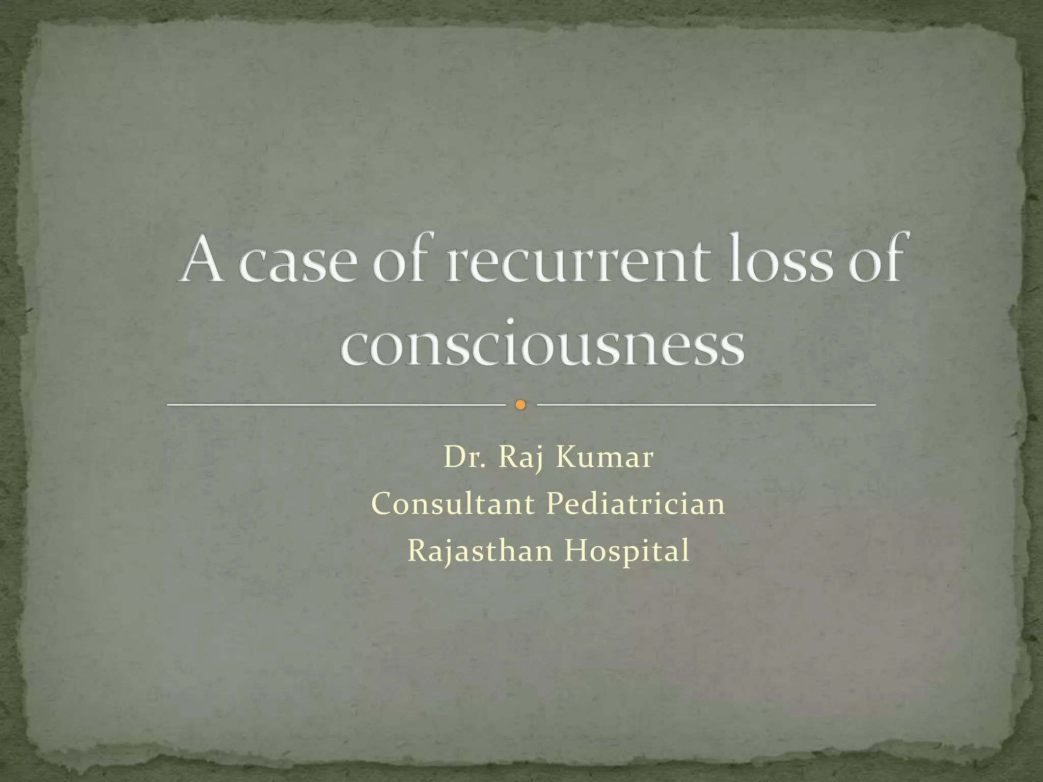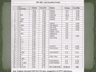 This document describes the case of a 3-year-old boy who presented with recurrent loss of consciousness following trivial illness. Initial workup revealed hypoglycemia and hyperammonemia. Further testing found elevated 2-oxoglutaric acid and a high C0/C16-18 ratio suggestive of carnitine palmitoyltransferase I (CPT-I) deficiency. The patient was diagnosed with a fatty acid oxidation disorder and treated accordingly.
