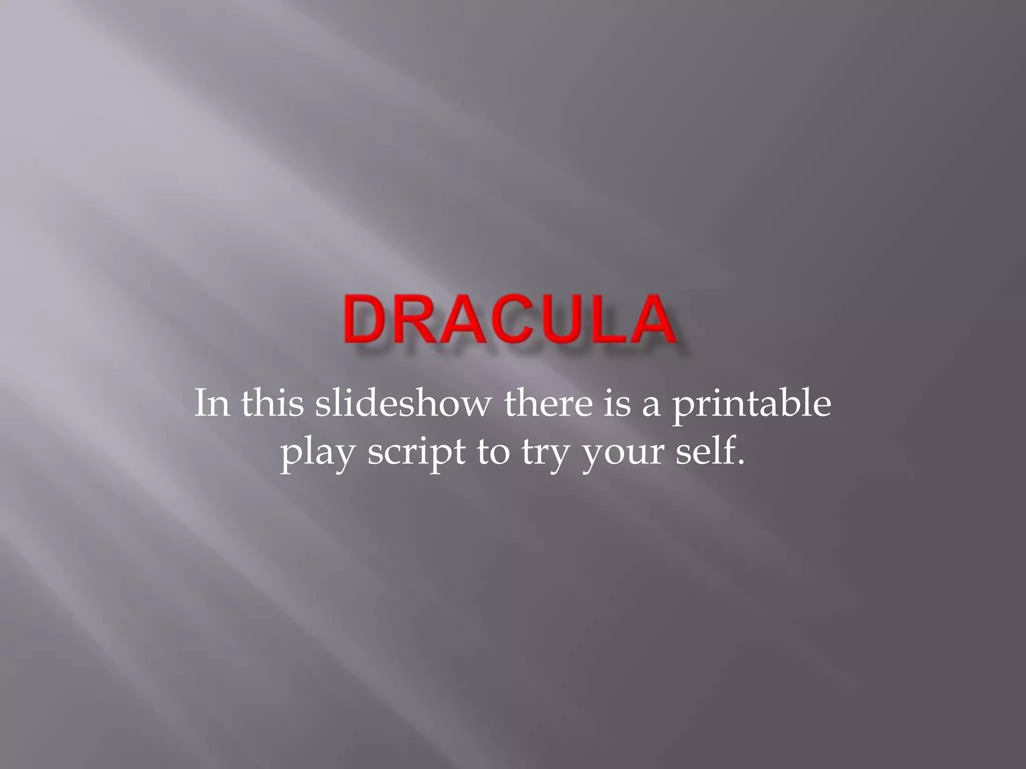 This document contains information about the play Dracula, including character lists and roles. It provides a printable play script and notes that Dracula is the title character and a vampire. Character roles are identified for both male and female parts. The document encourages viewing other slideshows and trying the printable play script.
