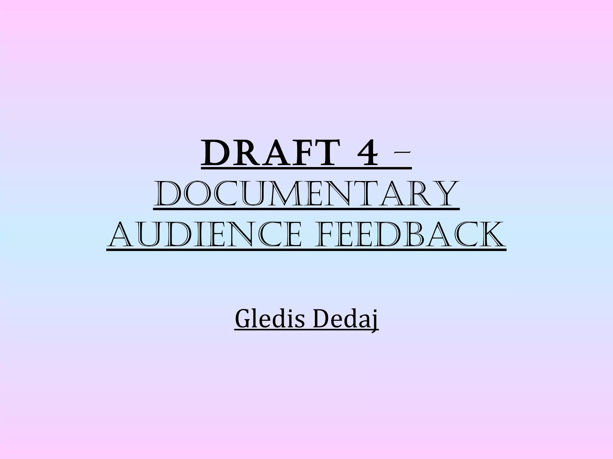 The document summarizes feedback from 4 people ages 16-24 on a documentary about social media control. They were asked about their impressions, the main message, interest in future episodes, relevance of sound/music, and effectiveness of the presenter. Overall, the feedback was positive with respondents finding the topic current, presentation style engaging, and interest in learning more.
