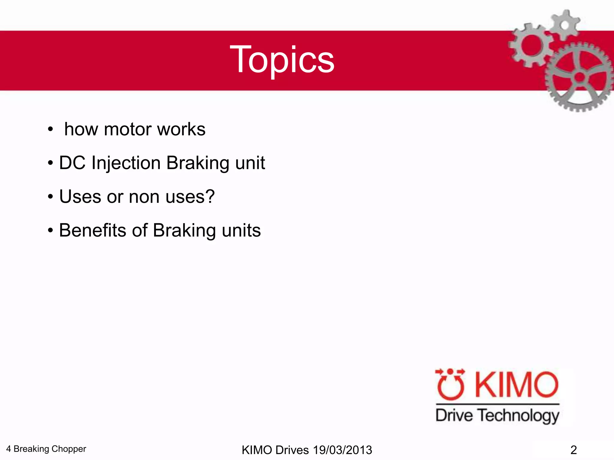 The document discusses the operation of AC motors and the concept of DC injection braking as a method to slow AC motors. It explains how an AC motor functions with a stationary stator and a rotating rotor, and highlights the dependency of rotor speed on AC frequency and motor pole count. The DC injection braking technique involves applying a DC voltage to the motor windings after disconnecting AC voltage to create braking force.
