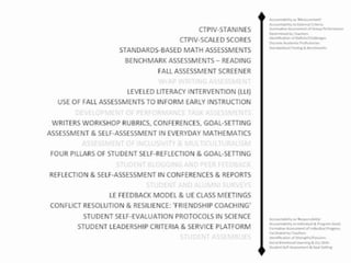 This document outlines the goals and agenda for an upper elementary town hall meeting about supporting student learning at home. The goals include reflecting on the school's mission, exploring how parents can support learning, sharing hopes for students, learning about faculty initiatives, using a question formulation technique, and discussing shared goals. The school's mission is to develop well-rounded students academically, intellectually, creatively, athletically, and socially. The presentation will also cover the school's approach to accountability and assessment, which balances external standardized testing with student self-assessment and goal-setting. Last year's parent engagement focused on defining successful students, and this year will discuss how teachers create a positive learning environment and climate.