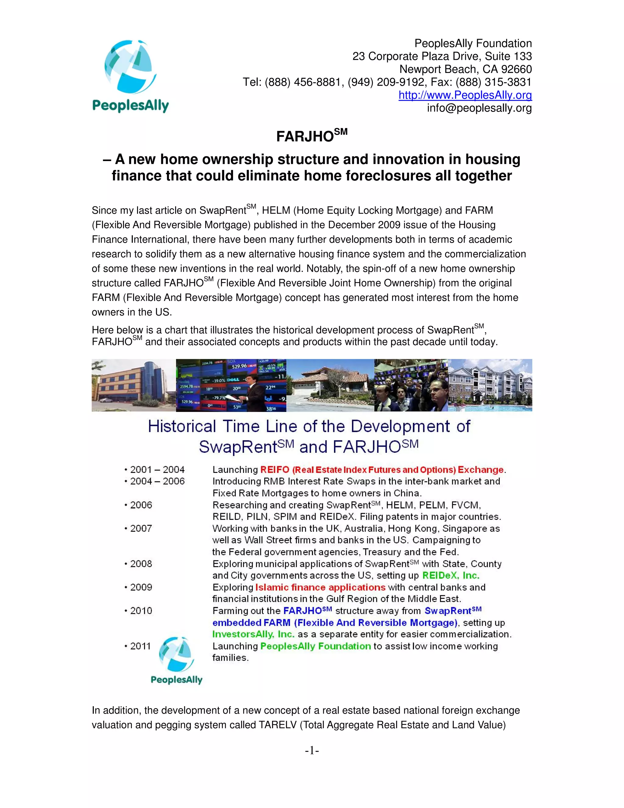 This document introduces FARJHOSM, a new home ownership structure that allows homeowners and investors to jointly own a single family home through a limited liability company (LLC) structure. Some key points: