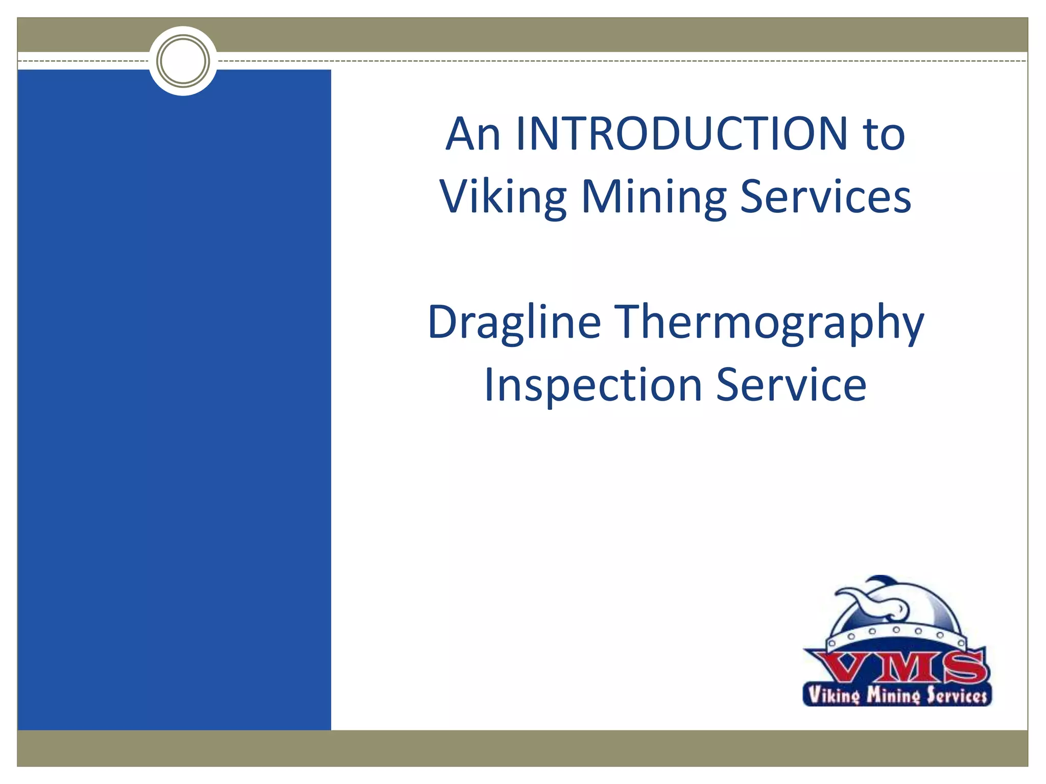 Viking Mining Services provides dragline thermography inspection services to identify potential issues before they cause costly downtime. Using advanced thermography equipment, Viking can inspect areas like booms, masts, gearboxes, bearings, drive shafts, couplings, electric motors, and MG sets to detect cracks, lubrication faults, misalignments, and other anomalies. Viking's inspections help clients establish customized predictive maintenance programs to monitor component trends over time and make informed decisions to schedule repairs and avoid unexpected breakdowns. This proactive approach has saved Viking's customers thousands of dollars in avoided downtime costs.