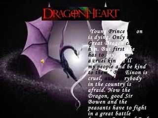 Prince Einon, who is cruel and feared by his people, is dying and must pledge to be a kind king to receive help from a great dragon. Sir Bowen, his mentor, wishes to teach him the old code of chivalry that emphasizes virtue, justice, and protection of the weak, while grappling with the current unrest between the knights and the peasants. As conflict looms, Bowen struggles between loyalty to the code and the violent actions of King Freyne and his knights.