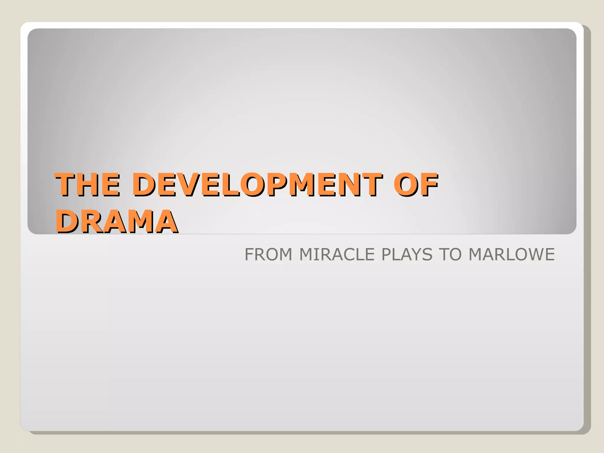 The development of drama in England progressed from miracle plays performed in churches about saints and miracles, to mystery plays told biblical stories in churchyards, to morality plays outside religious influence with professional actors and secular messages like Everyman. Interludes were elegant morality plays performed at feasts. Seneca's bloody plays influenced the revenge tragedy genre and plays like The Spanish Tragedy. The first permanent theater was built in 1576. Christopher Marlowe, part of the University Wits, was influential with plays like The Jew of Malta and Doctor Faustus, representing the Renaissance era.