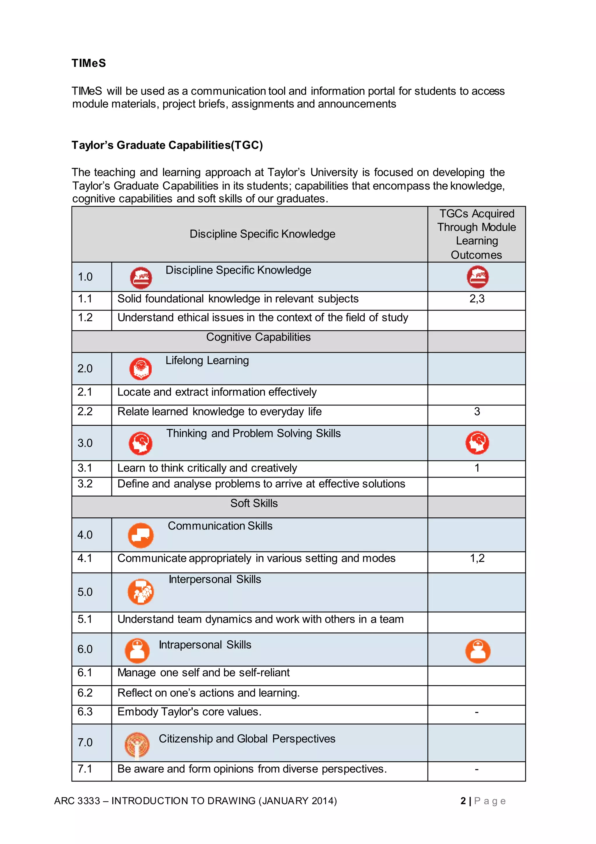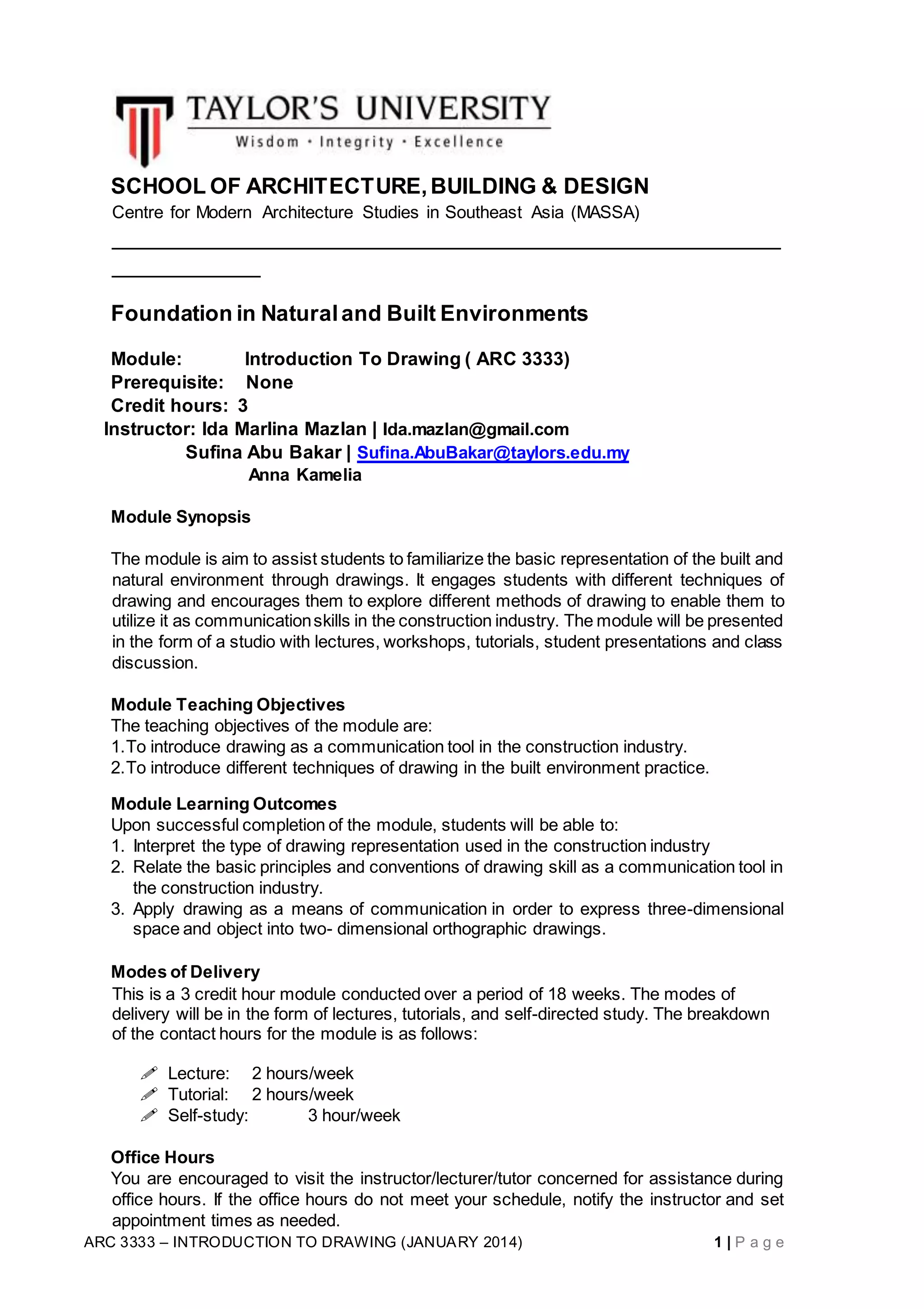 This document provides information about the Introduction to Drawing module offered at Taylor's University. The 3-sentence summary is: