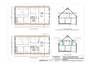 The document outlines modifications to a building, including new door openings on a load-bearing wall with specified dimensions. It details structural components such as beam dimensions and existing layouts on different floors. The project is commissioned by client Dhr. M. Hooijmans from Steenbergen.