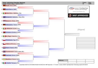 The document lists the results of the Kata Individual female Seniors event at the Karate1 Premier League in Dordrecht 2013, with the rankings and countries of 16 participants per tatami (area) over 4 tatami. It provides the names, countries and rankings of 64 female seniors competing individually in kata forms across the 4 tatami areas.