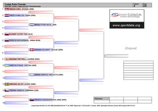 This document contains listings of competitors for various kata and kumite events at the 43rd EKF Junior, Cadet and U21 Championships. It provides the names, countries and registration numbers of over 200 cadet competitors entered in female and male kata, and female kumite in the weight categories of -47kg, -54kg and 54kg+. The listings are broken into multiple pages for each event.