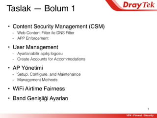 • Misafirlerin internetegirebilmesi için Firewall dan
