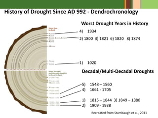 The document discusses the 2012 drought, analyzing its differences from historical droughts and the increasing demand for agricultural production due to a growing global middle class. It emphasizes the challenges of maintaining crop yields amid limited land and water resources, while also highlighting advancements in maize production and the need for sustainable agricultural practices. Collaboration and investment in agricultural research and development are urged to enhance resilience to future droughts.