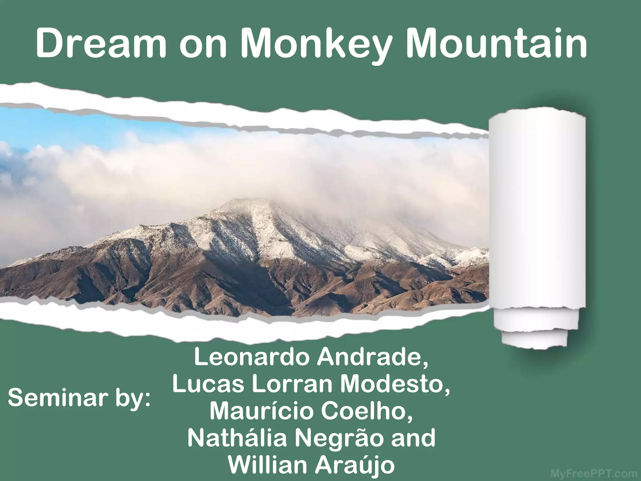 The document summarizes the play 'Dream on Monkey Mountain' by Derek Walcott, highlighting its main themes of dreams, identity, and race, and presenting key characters and plot points. It discusses the protagonist, Makak, who struggles with his identity and freedom while navigating a world shaped by colonial influence. The play is described as a visual narrative that blurs the lines between reality and dreams, ultimately leading to Makak's journey of self-discovery.