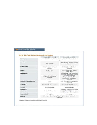 This document advertises purchasing a dream decoder and satellite dish set for PHP 4,990, with options for a Dream 390 or 650 monthly package. It also offers free delivery plus a PHP 1,500 installation fee. Users of pirated receivers are encouraged to surrender their equipment and pay PHP 3,990 to receive a dream decoder, paired smart card, and one month of the Dream LITE (390) package to view dream channels again using their existing satellite dish setup.