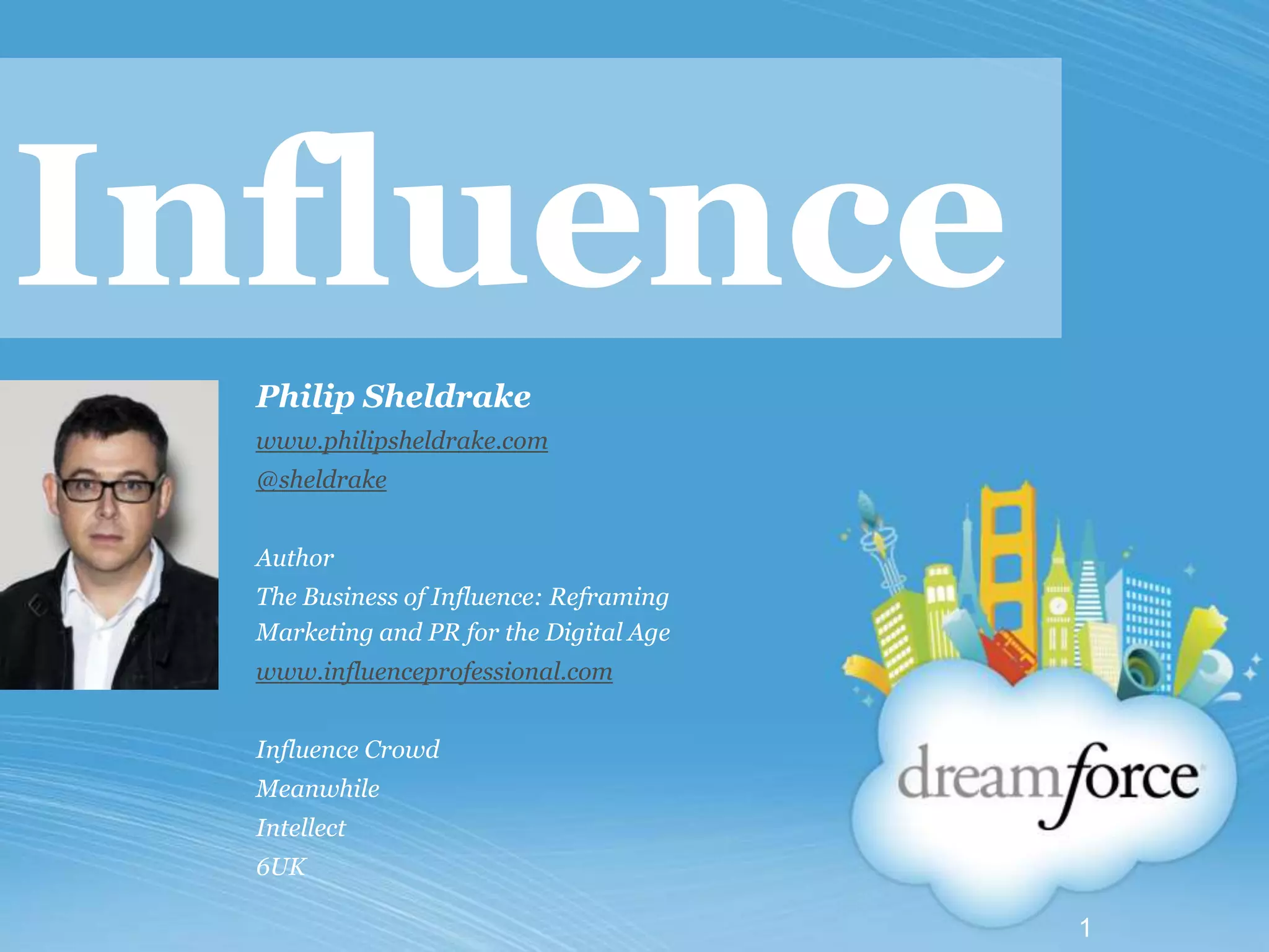 Philip Sheldrake's document focuses on redefining influence in the context of modern marketing and public relations, emphasizing the importance of authentic communication in the digital age. It proposes an influence strategy that integrates various organizational functions and highlights the need for a cohesive approach to managing influence across silos. The document introduces the 'influence scorecard' as a framework for aligning organizational objectives with influence-related activities for improved stakeholder engagement and business performance.