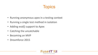 - Using the Metadata API and REST API to run test methods outside of a test context