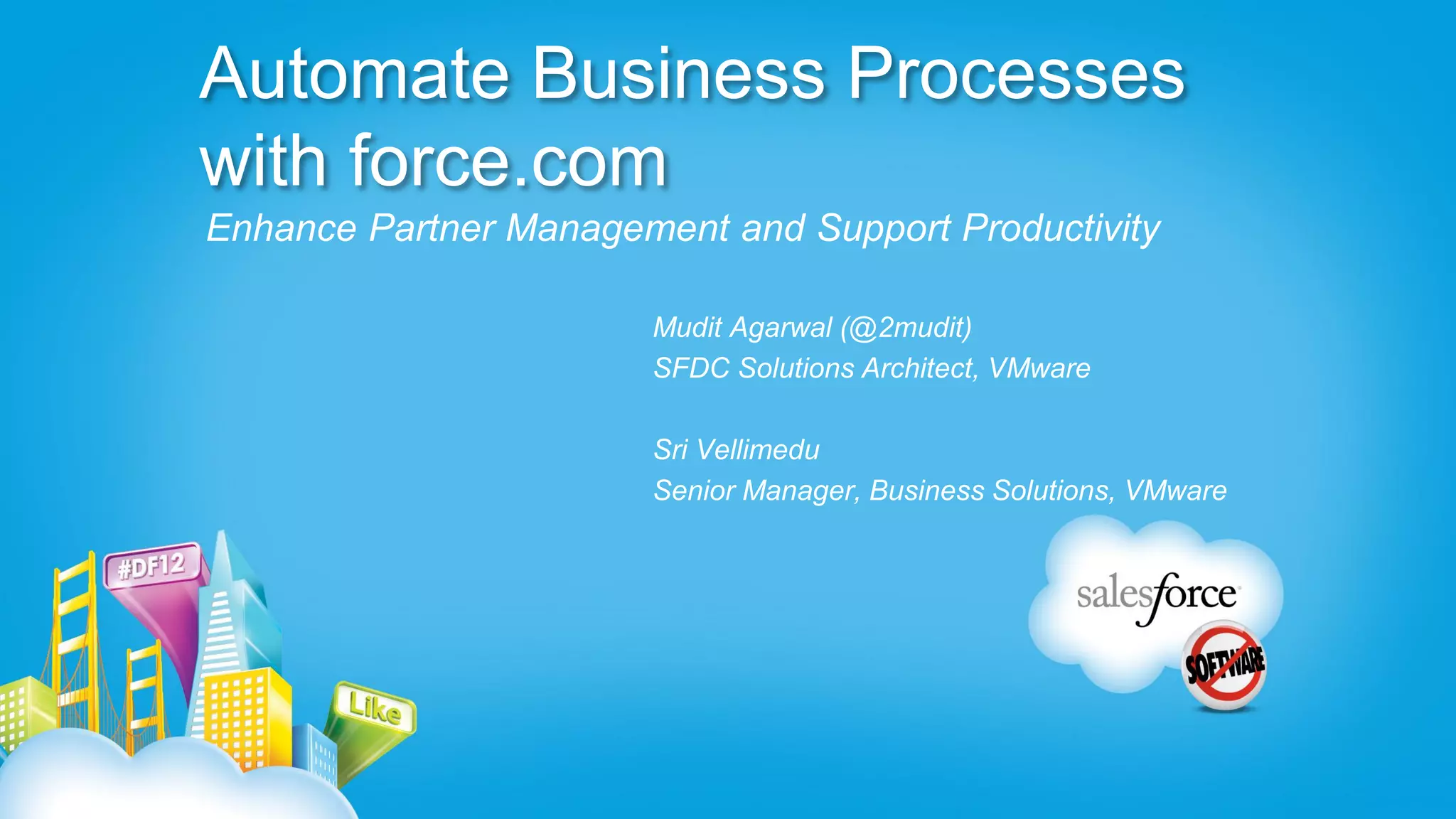The document discusses VMware's strategies for automating business processes using Salesforce's Force.com, focusing on partner management and productivity enhancements. It outlines key takeaways, company background, case studies, and the challenges VMware faced, including the complexity of managing partner relationships and the need for real-time access to content. Additionally, it covers successful solutions and best practices related to partner central automation and effort tracking within their customer service organization.