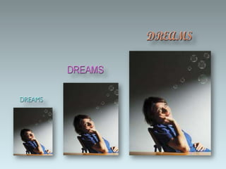 This document discusses dreaming and how dreaming allows one to be with someone whenever they want simply by dreaming of them. It states that all one needs to do is dream in order to be with the person they want.
