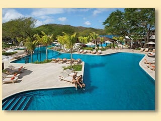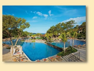 This document provides information about destination wedding options at the Dreams Las Mareas resort in Costa Rica. The resort is located on the northern coast of Guanacaste and offers 447 suites, seven restaurants, three bars, two pools, and amenities like cooking classes and beach activities. Room types include junior suites with mountain, tropical, or swim-out pool views. The resort also has information available about wedding packages that can be included in a contract.