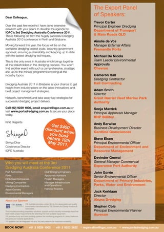 The 3rd Dredging Conference in Australia, scheduled for July 26-27, 2011, aims to unite stakeholders in the dredging industry to discuss securing government approvals, sustainability, and modern dredging techniques. Key speakers include industry experts from various organizations who will address issues like environmental assessments, community relations, and project management strategies. This event promises a comprehensive program including workshops and networking opportunities to enhance knowledge and collaboration among professionals in the field.