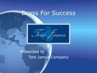This presentation from Tom James Company discusses the importance of dressing for success in business. It emphasizes that first impressions, including one's appearance, are formed within 30 seconds and influence how others perceive you. The presentation provides many tips for both men and women on the proper clothing choices, styles, fits, colors and accessories to project a professional image at work. It stresses paying attention to overlooked details like well-fitting and tailored clothing, appropriate shoes and minimal distracting accessories.
