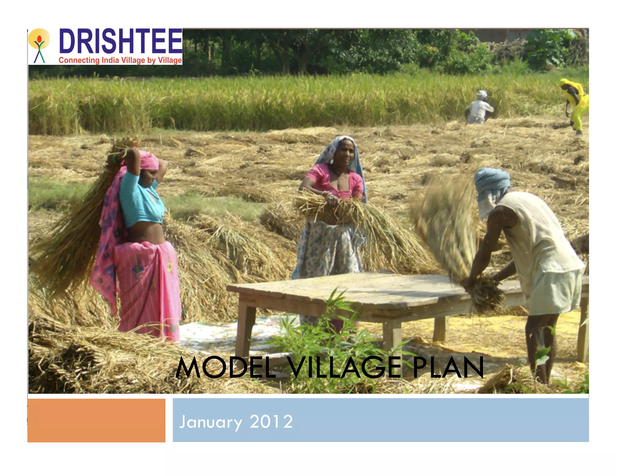 The Model Village Plan aims to promote sustainability in rural India by addressing key challenges faced by villages through a comprehensive approach focusing on livelihood, infrastructure, and services. Drishtee has established a rural supply chain network, supporting micro-enterprises and enhancing community resources, with the goal of scaling up the successful model from one pilot village to 500 by 2016. Participation is encouraged for critical evaluation, development of new business models, and funding support for the initiative.