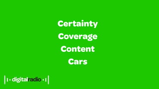 - DAB is available on 90% of Ford's vehicle range and will be engineered into future product launches.