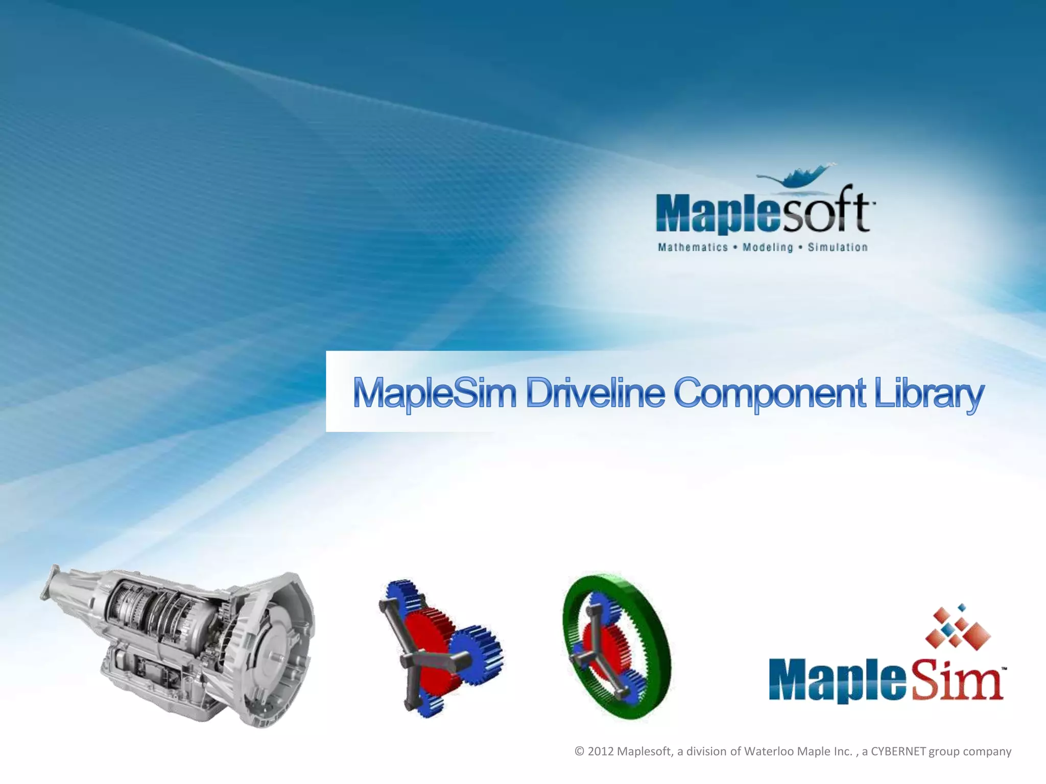 The MapleSim Driveline Component Library provides benefits for automobile transmission manufacturers, advanced robotics developers, and engineers working in controls engineering, hardware-in-the-loop (HIL) simulations, system efficiency improvement, and power transmission with planetary gears. It allows for faster and easier modeling of transmission systems compared to other platforms, includes tools for modeling power losses, and can generate code for real-time applications. The library was developed in conjunction with a major transmission manufacturer and is well-suited for modeling a variety of transmission types.