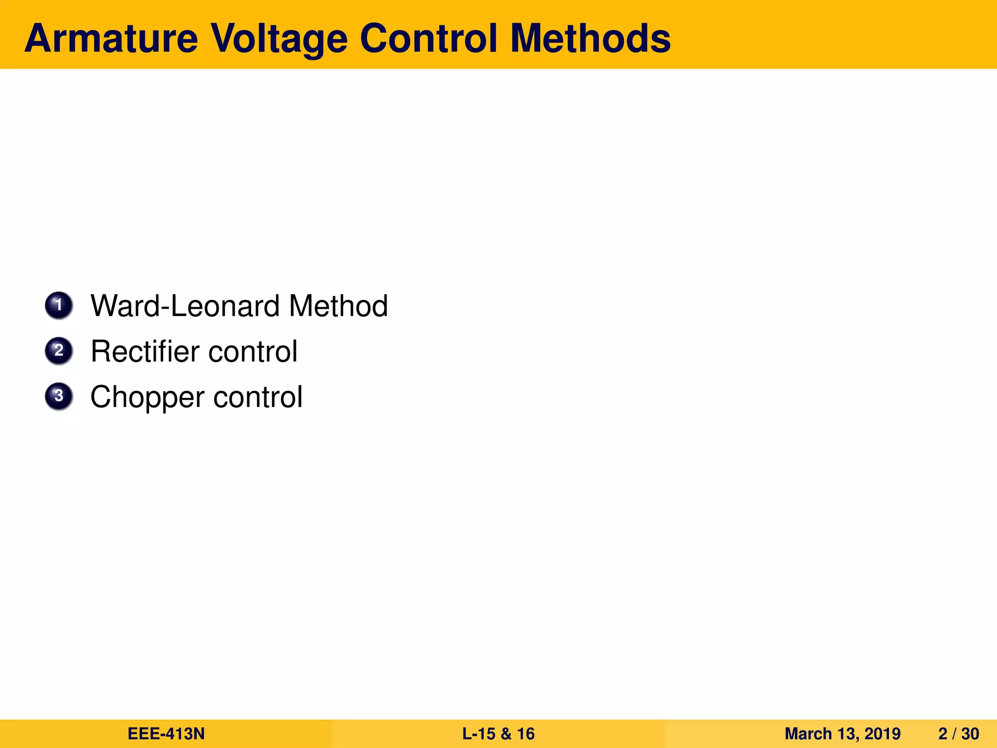 The document discusses various armature voltage control methods for electric drives, focusing on the Ward-Leonard method and rectifier control techniques. It highlights the advantages and drawbacks of each method, including regenerative braking capabilities, efficiency concerns, and system size. Additionally, the document details operational principles and configurations involving transformers and rectifiers for different power ratings.