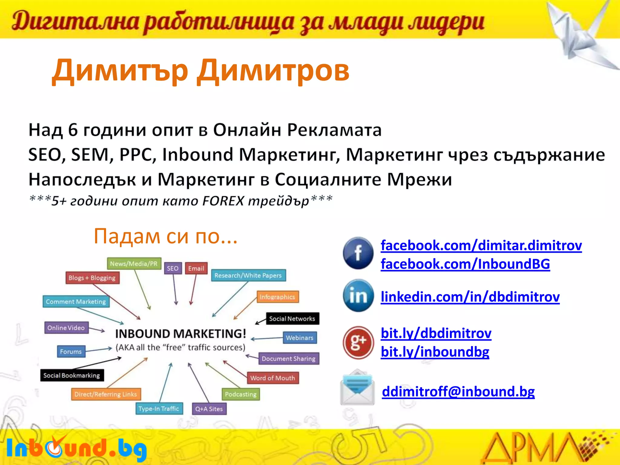 линкове от профилите Ви;