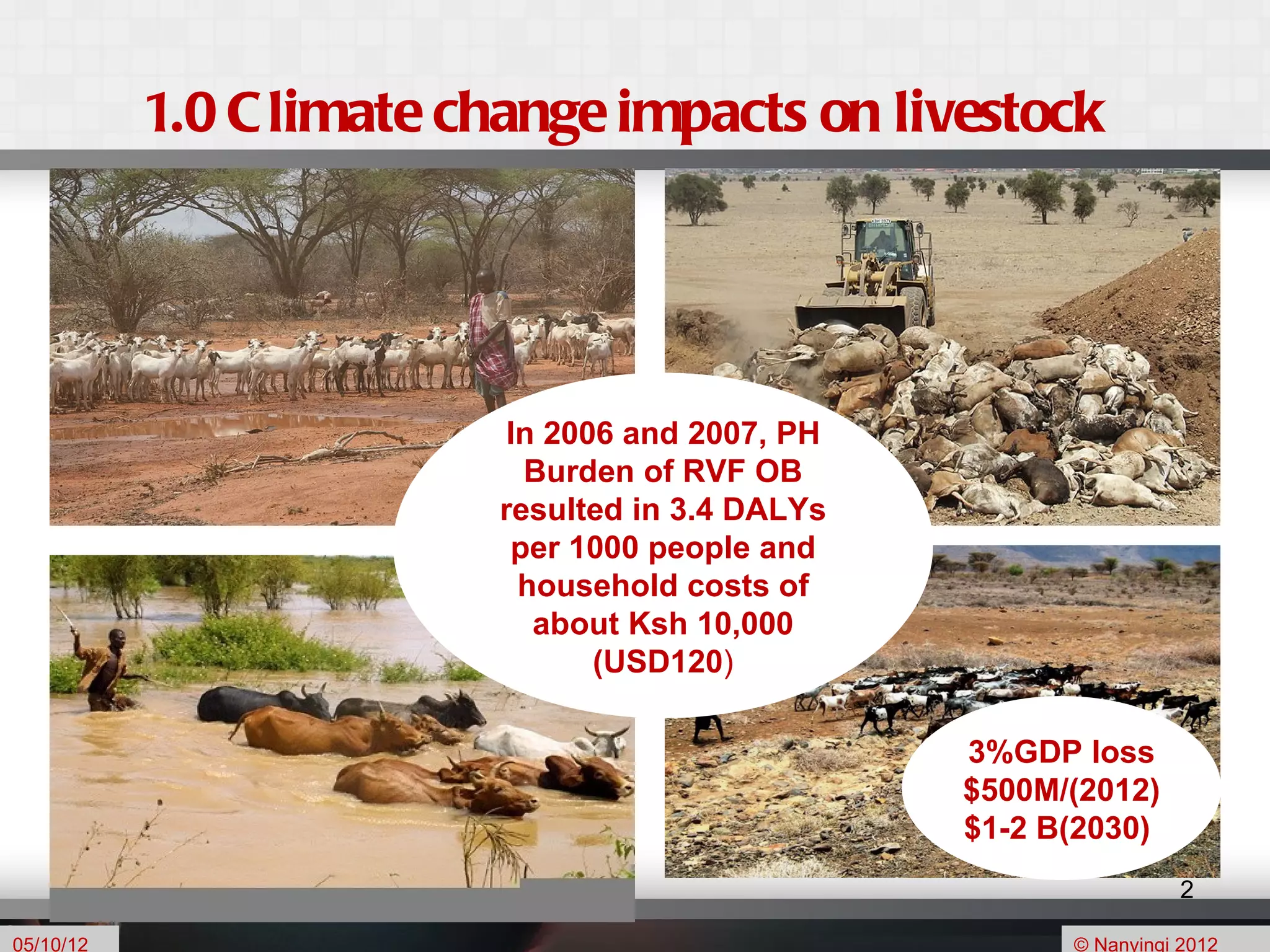The document discusses the impacts of climate change on livestock systems in Kenya, highlighting vulnerabilities and adaptation strategies such as nomadic pastoralism and community watering points. It addresses impediments to adaptation, including economic capacity issues and ineffective policies, and suggests emerging mechanisms like sustainable intensification and improved feeding regimes. Recommendations emphasize the need for multidisciplinary research and supportive policies to enhance the resilience of vulnerable communities.