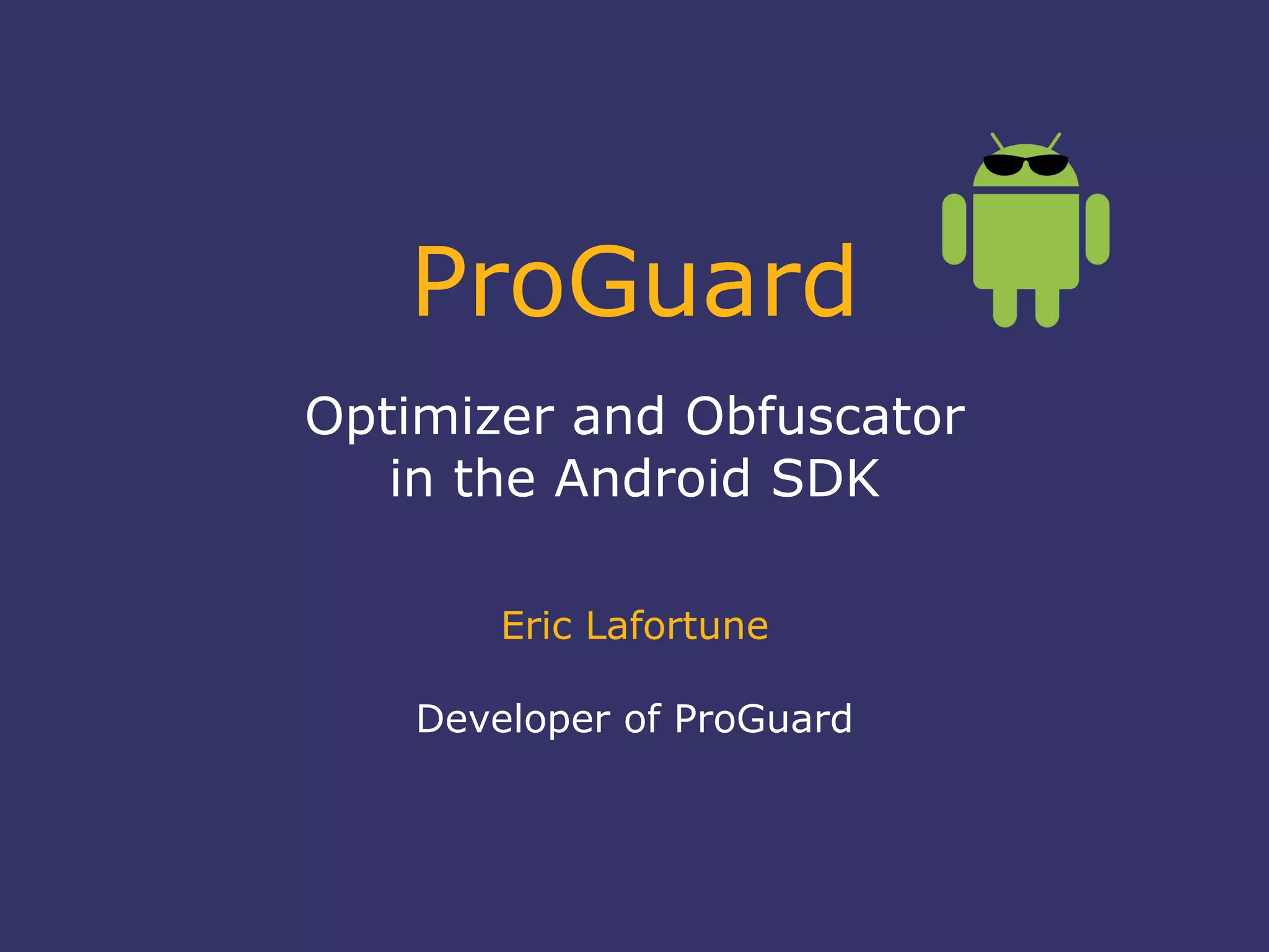 ProGuard is an open source tool that optimizes and obfuscates Java bytecode. It can shrink code size by removing unused classes, fields, and methods. It optimizes code through optimizations like constant propagation and method inlining. It obfuscates code by renaming classes, fields, and methods to obscure their purpose. ProGuard is included in the Android SDK and can help protect Android apps from reverse engineering.