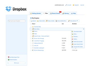 ![Thank you. www.dropbox.com [email_address]](https://image.slidesharecdn.com/dropboxppt-100105213009-phpapp01/85/Drop-Box-Ppt-14-320.jpg)