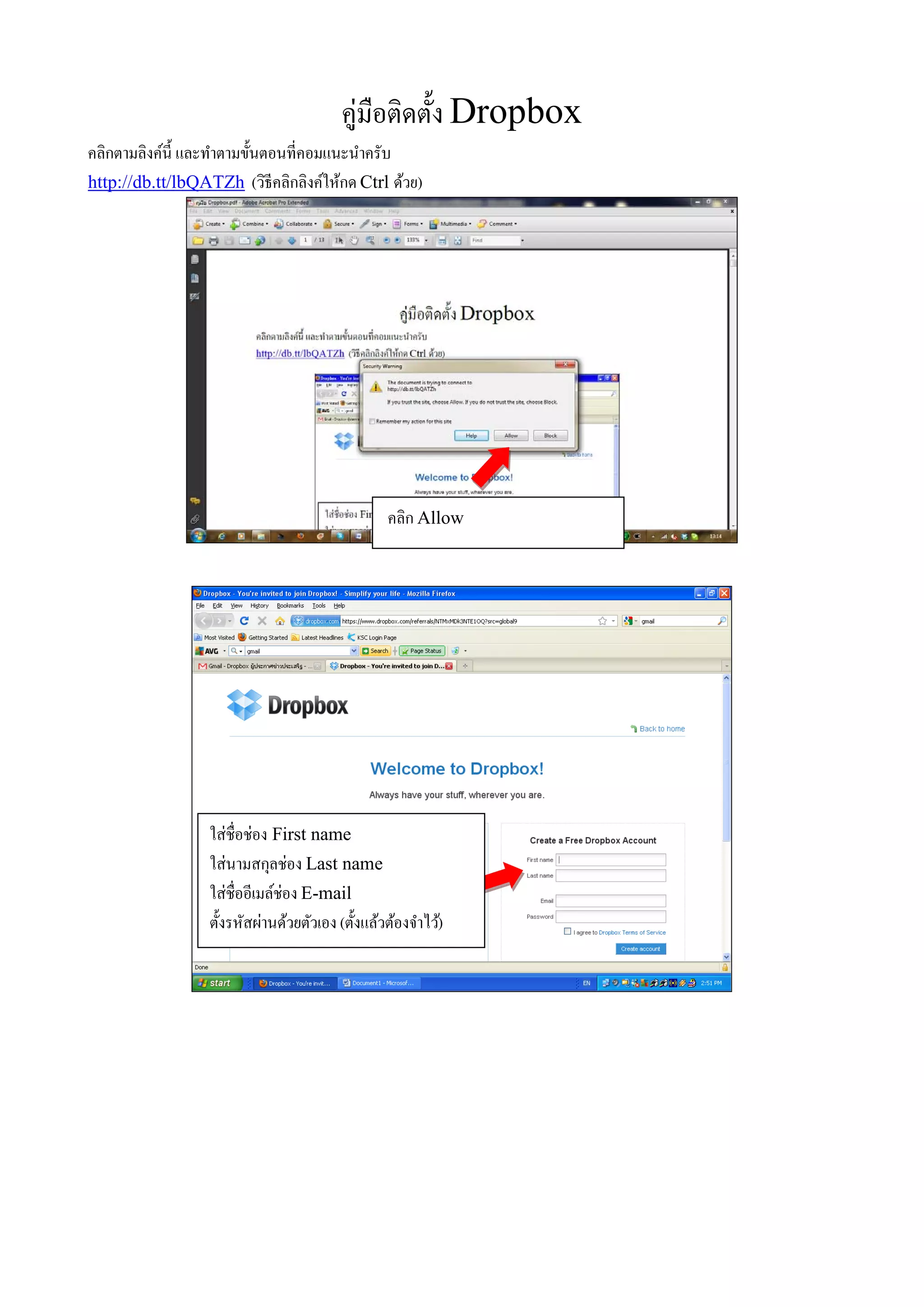 คู่มือติดตั้ง Dropbox คลิกตามลิงค์น้ ี