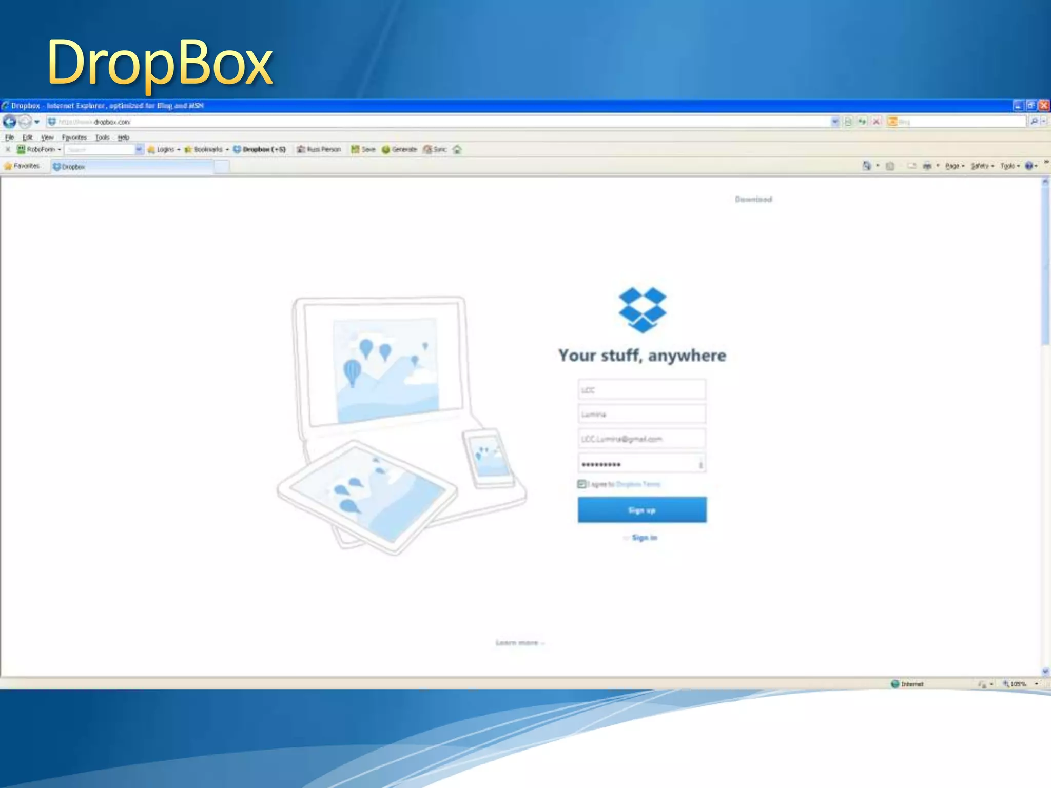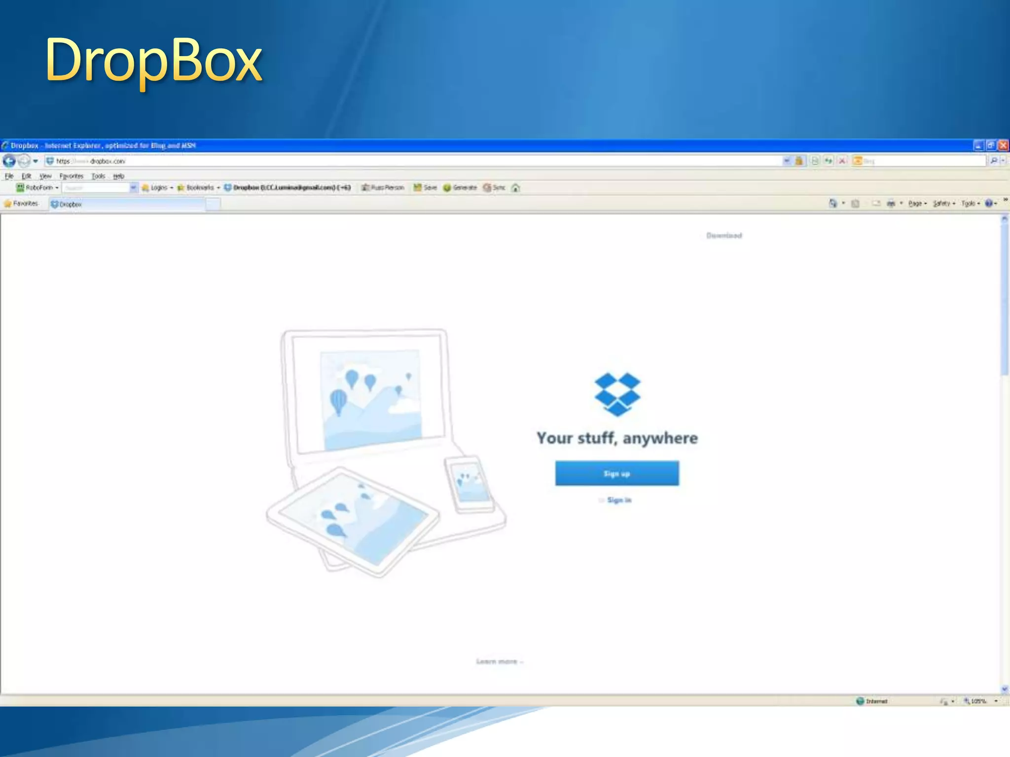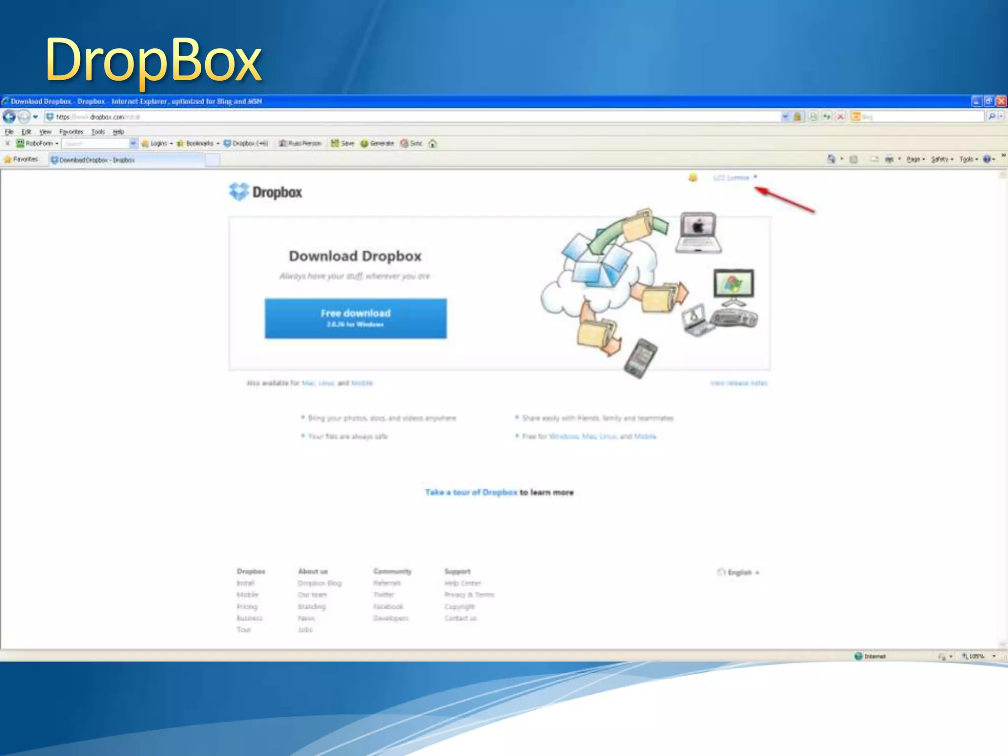 This document discusses cloud storage, its advantages and disadvantages, and options for free or low-cost cloud storage services. It notes that cloud storage allows access to files from anywhere, requires less storage space on devices, and serves as a backup. However, internet access is needed and sharing files isn't always desirable. Popular cloud drive services mentioned include Dropbox, Google Drive, SkyDrive, Box and SugarSync. Other cloud options include iCloud, Amazon Cloud Drive and Evernote.