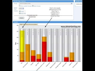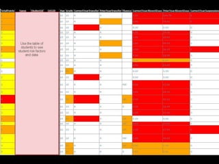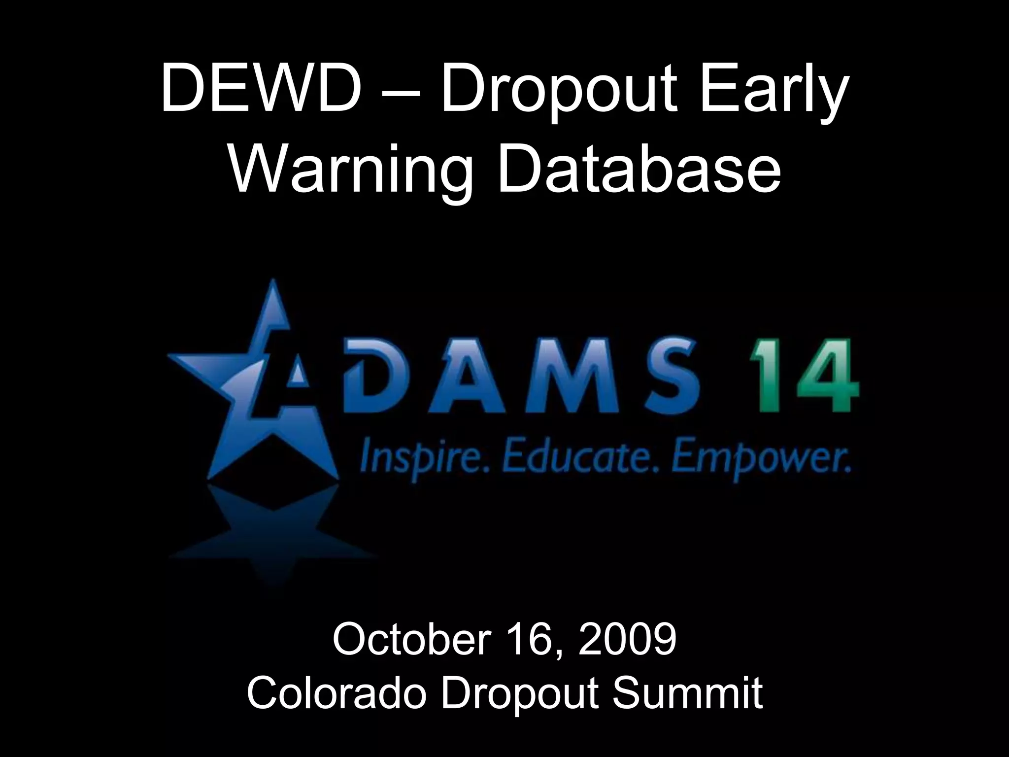 The document describes the DEWD (Dropout Early Warning Database) system created by the Adams 14 Board of Education to reduce the district's dropout rate. The system studied four years of graduate and dropout data to identify risk factors like attendance, behavior, and course failure. It then aligned specific interventions for students at each risk tier, such as individual attendance plans, online credit recovery courses, tutoring, and alternative schools. The strategic initiative was to develop and implement this multi-tiered dropout prevention plan.