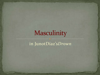 The document discusses themes in Junot Díaz's short story collection Drown, including the struggles of young Latino males pursuing the American Dream, the role of mothers and issues of masculinity and sexuality. It also provides historical context about the dictatorship of Rafael Trujillo in the Dominican Republic from 1930 to 1961, noting his cult of personality, repression of civil liberties and political opponents, use of torture, promotion of motherhood and racism.