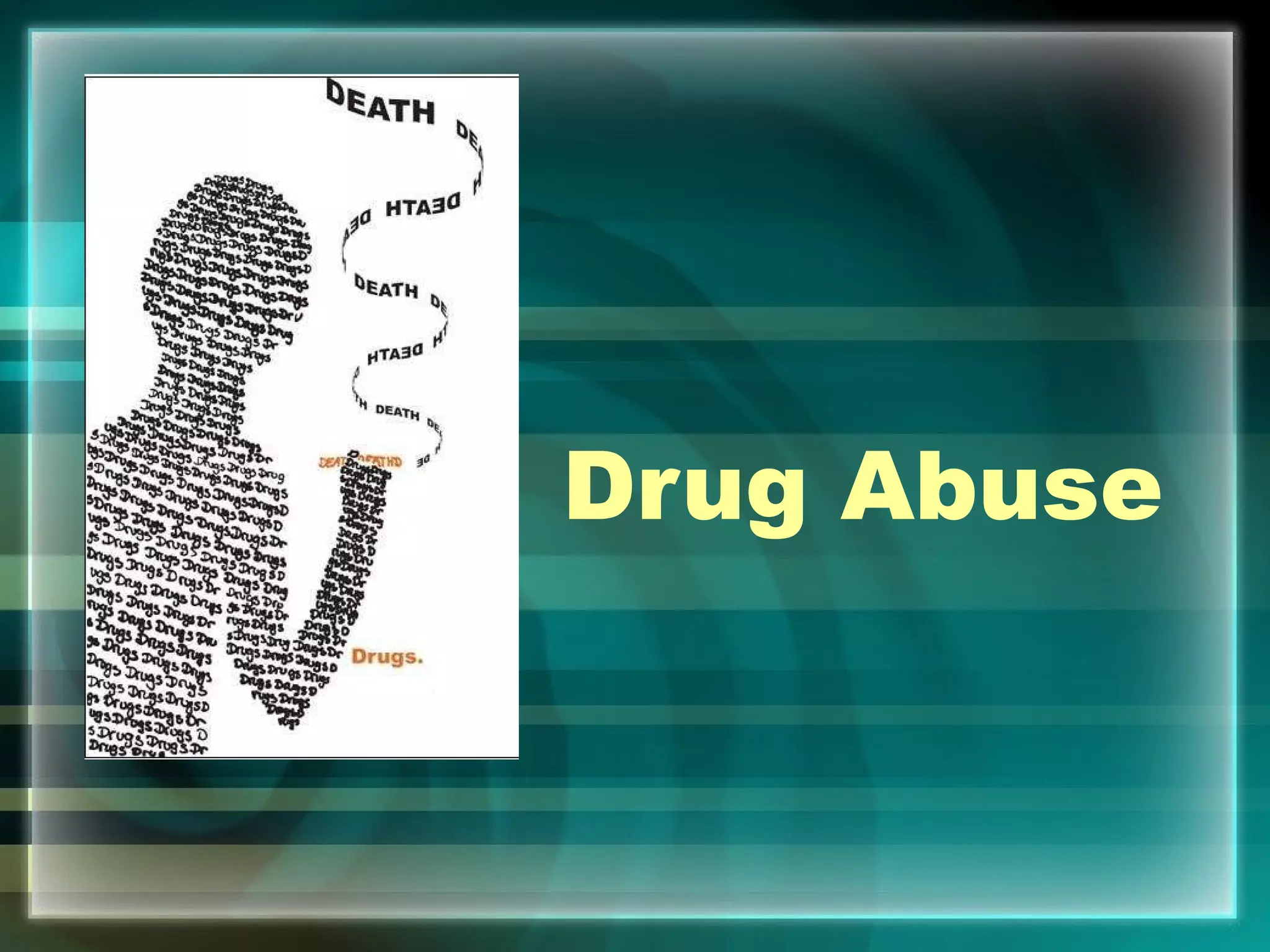 This document discusses the dangers of drug and alcohol abuse. It notes that drug and alcohol use can lead to health issues like blackouts, memory loss, and even death from car accidents and overdoses. The document provides statistics on drug use among teens and warns that starting drinking before age 15 increases the risk of alcoholism. It encourages refusing drugs and alcohol and knowing the facts about illegal and dangerous substances.