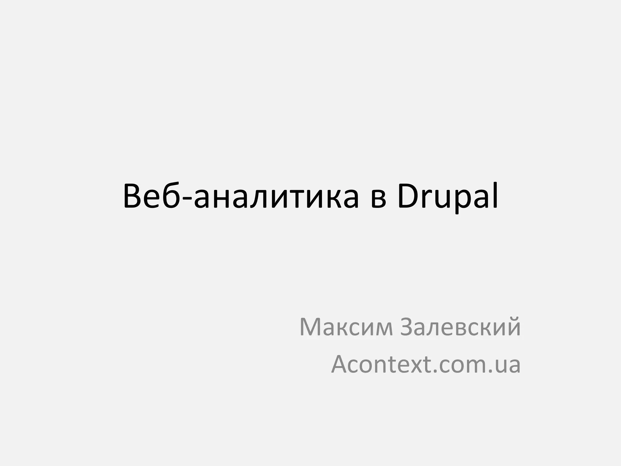 Документ посвящен веб-аналитике в системе управления контентом Drupal, охватывающий потребности посетителей и предложение веб-сайта. Рассматриваются методы анализа заказов, создание базы клиентов, а также использование инструментов аналитики, таких как Google Analytics и Yandex Metrika. Описаны техники A/B тестирования и отслеживания действий пользователей для повышения лояльности и улучшения опыта посетителей.
