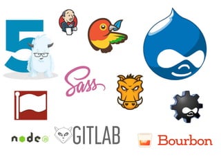 The document discusses managing Drupal projects with Git. It describes using a "base build" repository as an upstream for new Drupal sites, containing common code. New sites clone the base build and treat it as an upstream remote, developing on their own origin remote. Periodically merging upstream keeps sites in sync while allowing independent development. This approach aims to minimize maintenance pain while focusing on user experiences rather than DevOps tasks.